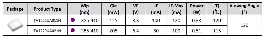 • 高光功率密度UV LED